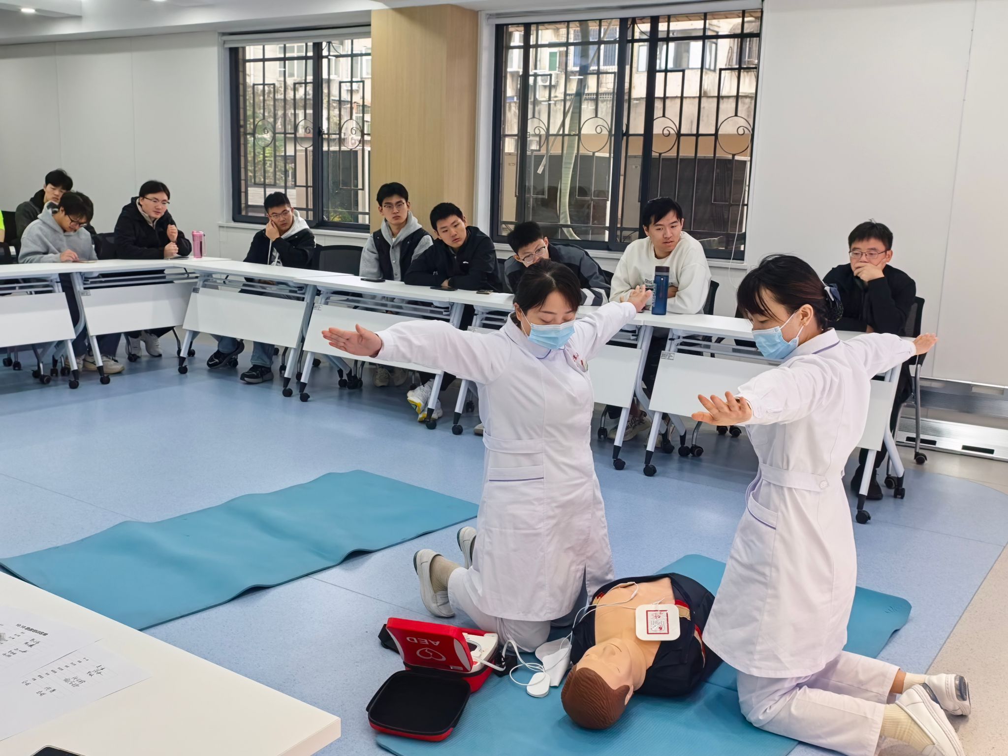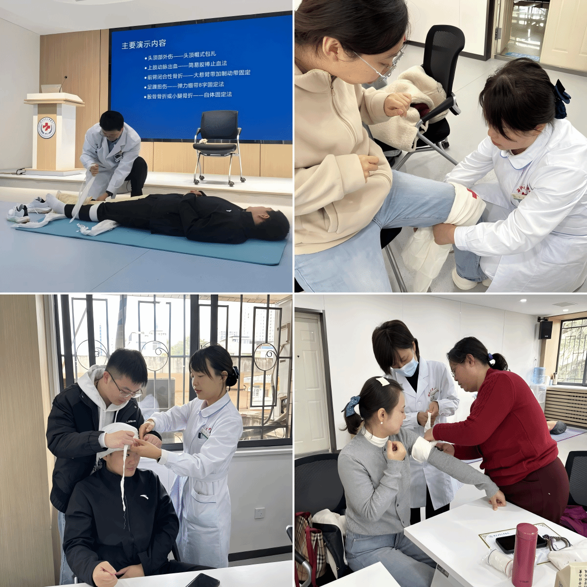 培训中,何凯亮系统讲解了四项核心急救技能:心肺复苏的操作要点、AED的规范使用、海姆立克急救法的动作要领及常见外伤的急救包扎技巧。他结合真实案例,让抽象的急救知识变得清晰易懂。
