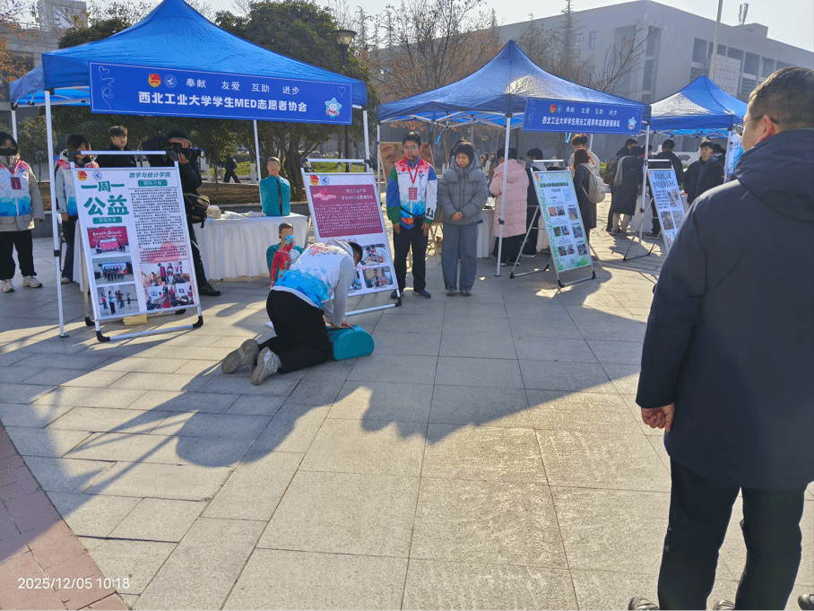 12月5日,恰逢第40个国际志愿者日,为弘扬雷锋精神和志愿服务理念,西北工业大学学生MED志愿者协会携手西北工业大学数学与统计学院团委志工部,于翱翔学生中心广场成功举办以“社区服务”为核心的志愿服务主题活动。共青团陕西省委二级巡视员王军民,西北工业大学党委副书记詹浩,共青团陕西省委青年社会事业部部长吴闯,校团委书记佘磊磊,以及陕西省财政厅、陕西省青年志愿者协会等相关单位同志莅临现场,与全校师生共同感受志愿精神的蓬勃力量。
