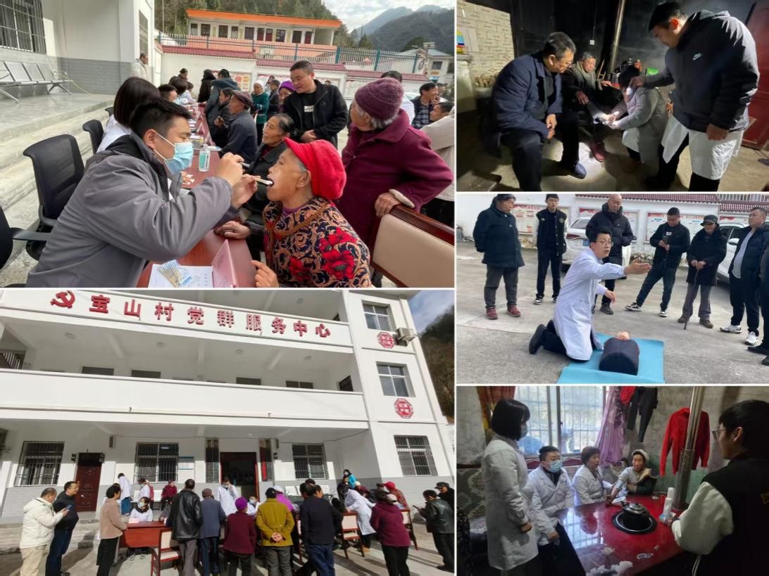随后,医护团队在宝山村委会广场开展乡村健康关爱行动,现场设立内科、口腔科、外科、骨科、皮肤科等专科咨询点,为村民提供“基础检查+专科问诊+用药指导+慢病指导”的一站式服务。针对高血压、糖尿病、关节炎、老年皮肤瘙痒症等乡村高发常见病,为村民精准判断病情,解答日常用药困惑,并就慢性病剂量调整等问题给出专业建议;同时现场演示海姆立克急救法、心肺复苏等急救技能,手把手指导村民掌握关键操作要点,提升大家应对突发状况的自救互救能力。此外,医护人员还分别前往宝山村、栗子垭村开展入户健康服务。据统计,基础检测与诊疗服务覆盖60余人次,用实际行动化解群众“看病难、看病远”的突出问题,让党员们在为民服务中践行初心使命、锤炼政治品格。