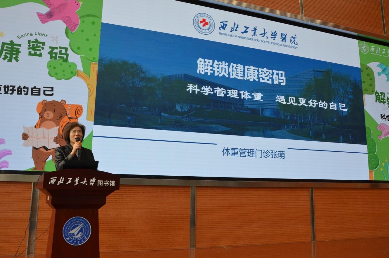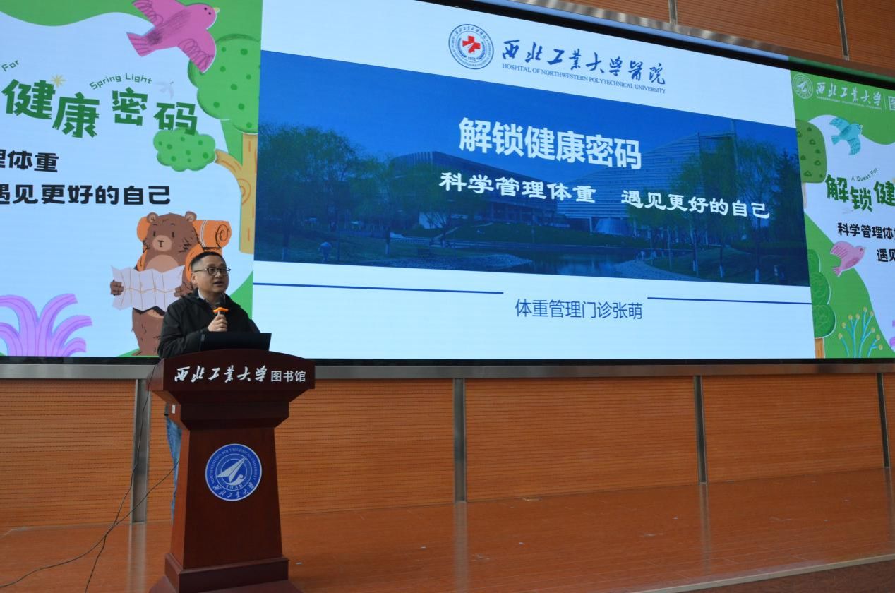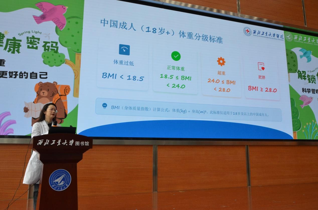 体重管理门诊副主任医师张萌以《解锁健康密码——科学管理体重,遇见更好的自己》为题,从“如何评估自己的体重”切入,通过互动问答帮助师生了解自身的体重指数水平。她进一步讲解了体重管理的意义与科学方法,让大家既明白“为什么”要做,也清楚“怎么做”。最后,她分享了医院减脂营中减重成效显著的学员案例,用身边人的真实变化鼓励大家积极尝试、主动改变。