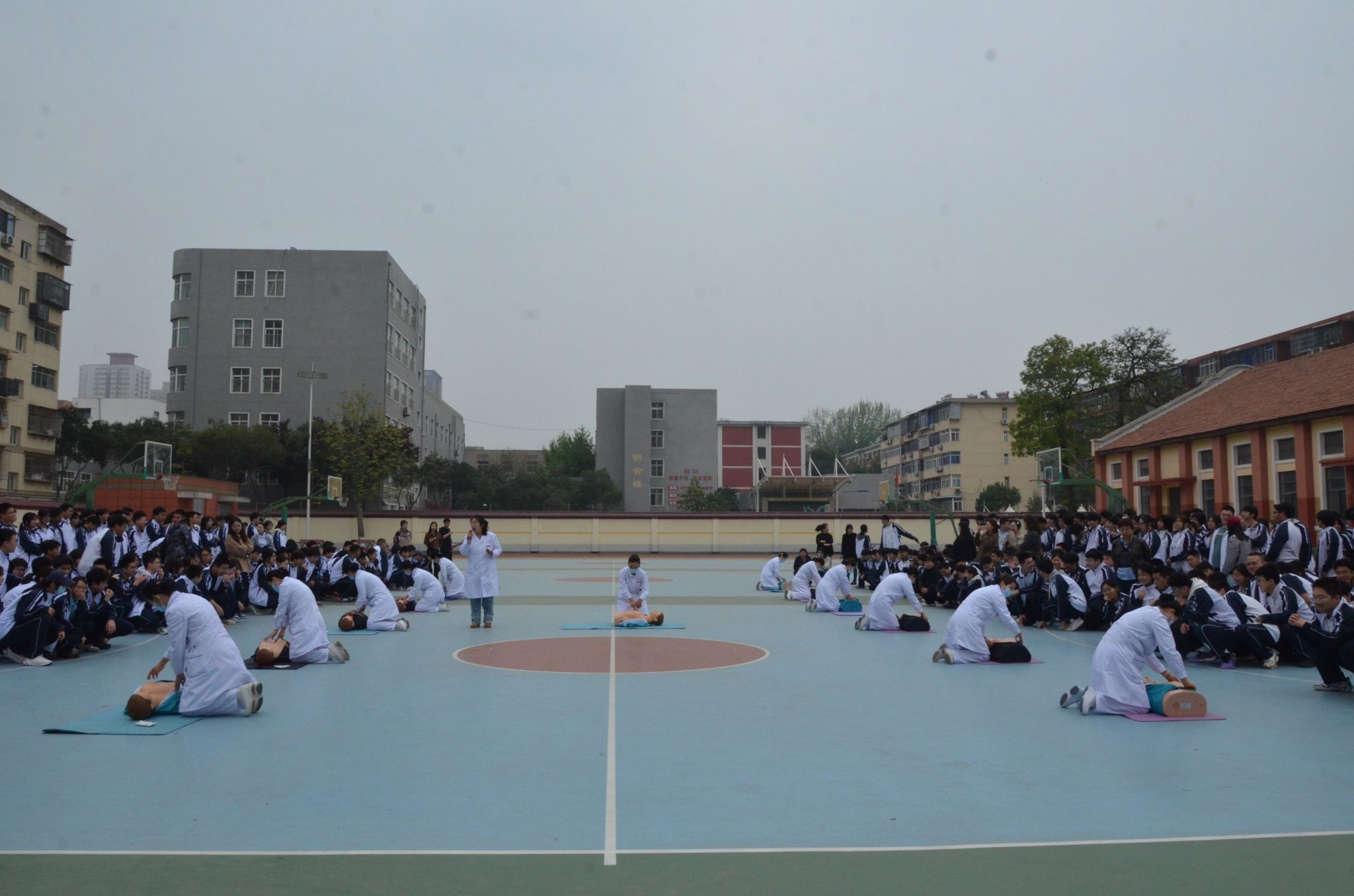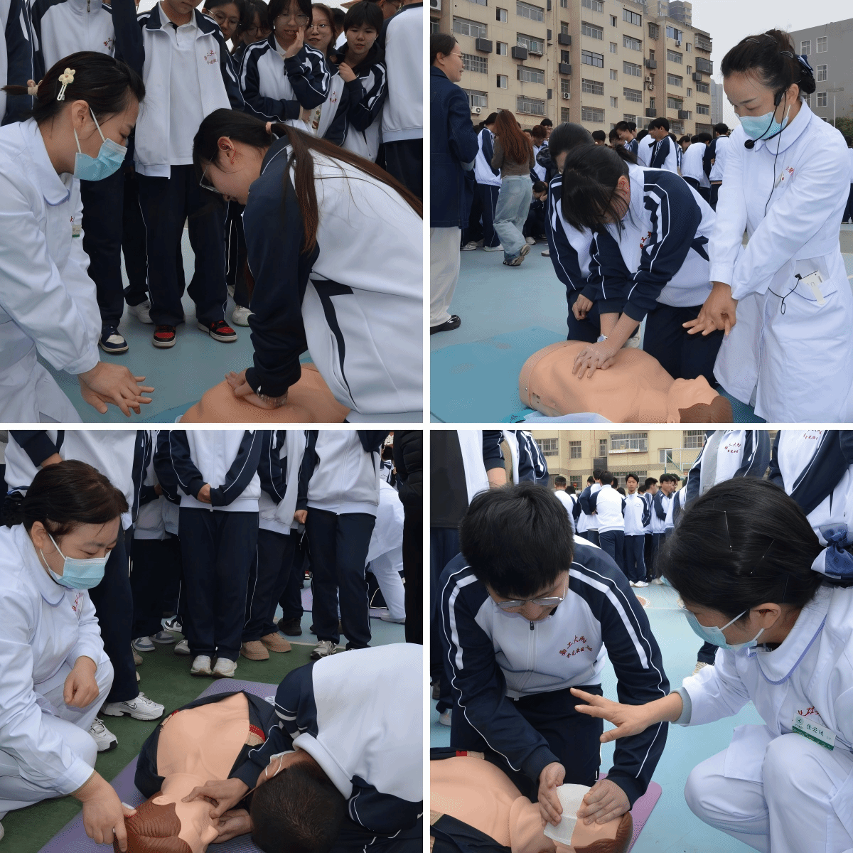 随后,医护团队继续为部分任课教师、行政人员、后勤安保及食堂工作人员进行专场培训。大家在动手练习后踊跃提问,医务人员耐心解答了各项操作中的疑问。