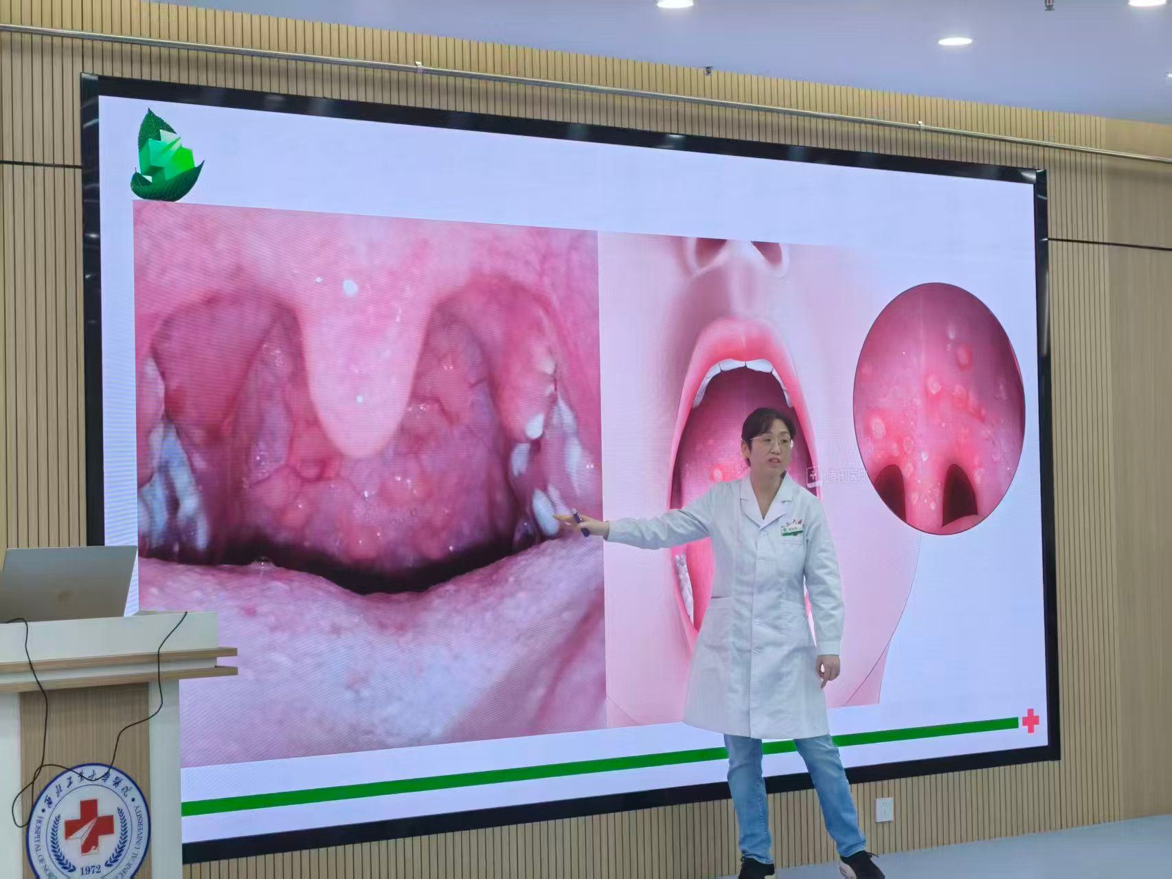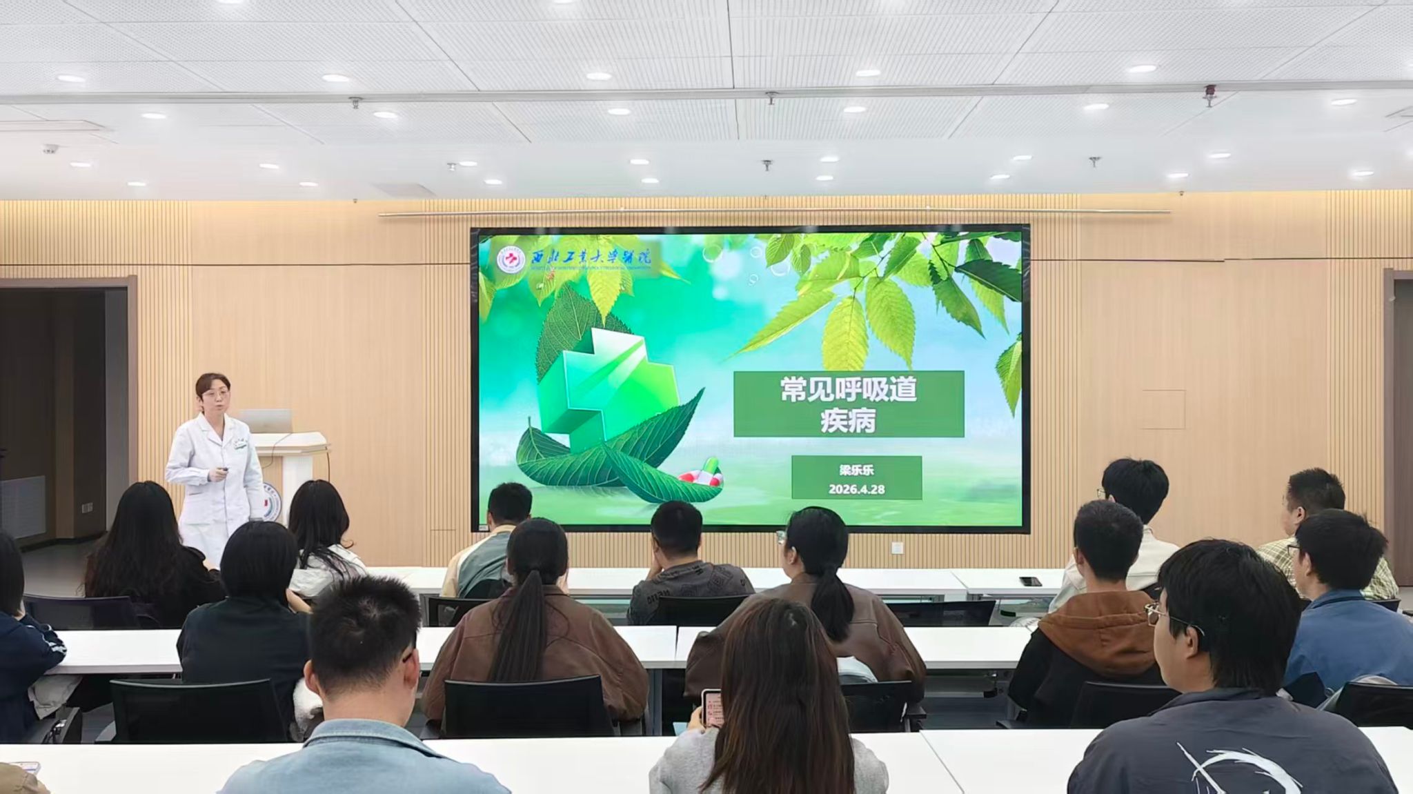讲座中,梁乐乐风趣幽默、讲解生动。她特别提到:“我们今天不是传统授课,而是围绕治病’来讲课,结合实际病例与诊疗思路和大家交流。”讲座也一改常规宣讲模式,重点围绕上呼吸道感染、肺炎支原体感染等校园高发呼吸道疾病,结合大量临床真实诊疗病例展开讲解,内容实用、接地气,让同学们听得懂、用得上。